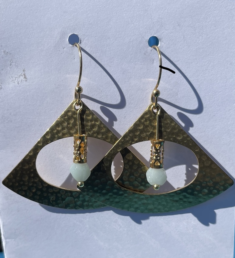 Shaped Earrings – Charms in various shapes and sizes are linked together to form larger dangles. Stones can also be added to the design, and brass, copper and nickel silver metals are used.