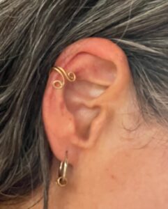 Ear Cuffs – Ear cuffs are made with Sterling silver, brass, copper or nickel silver wire or textured metal, and may have a crystal drop attached.