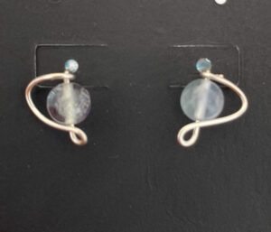 Wire and Gemstone Post Earrings – These earrings are made with brass, copper and sterling silver wire, wrapped around a variety of gemstones. They are simple post earrings with the stones shape’s being silhouetted or enhanced by the wire.