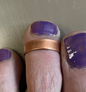 Toe Rings – Toe rings are made with copper, brass or Sterling silver etched or textured metal, or copper, brass or Sterling silver wire in a variety of styles.
